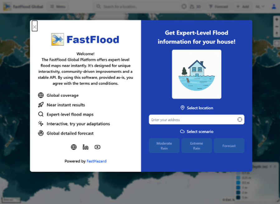 FastFlood Global - A detailed information and modelling platform benefitting from automated setup anywhere on earth.