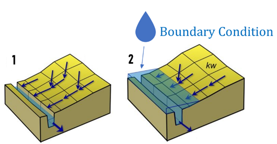 Boundary conditions tell the model how much water is flowing into the area from rivers at its edges. This is a crucial starting point, ensuring the simulation begins with the correct amount of water in the river system.