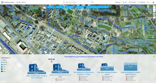 - View in 3D: Click the "3D" button in the top menu. You can now fly through your simulation, seeing exactly how the water interacts with 3D buildings and terrain. This gives you a powerful, intuitive understanding of the flood risk.