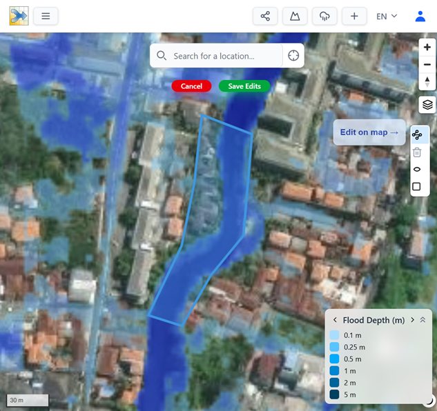 You can specify a change in the DTM data directly in the web platform. You can specify regions where you would like to adjust the elevation data directly.